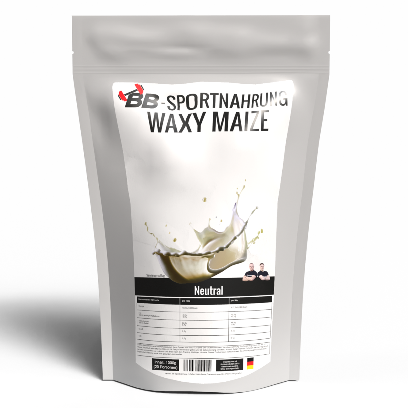 Pulver zum anrühren eines kohlenhydrathaltigen Getränks aus Maltodextrin (aus Wachsmaisstärke) mit 96% Kohlenhydrate, 0,2% Protein, 0,1% Fett